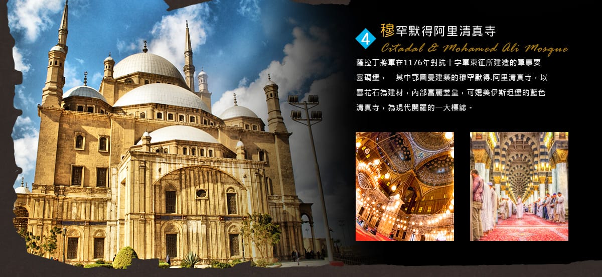 - 安排開羅老城區~穆罕默得阿里清真寺、埃及考古/文明雙博物館,解開世界古老文明昔日神秘風采。