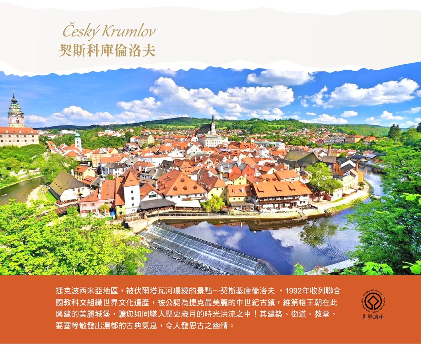庫倫洛夫又稱為CK小鎮,距離布拉格約3小時車程,被譽為世界上最美麗的小鎮,知名度僅次首都布拉格的第二大觀光城市。庫倫洛夫以童話風格小鎮聞名,蜿蜒的河流穿越橘紅屋頂的小鎮,一座五彩繽紛的高塔,再加一座哥德式的尖塔教堂,如童話故事般夢幻的場景,正就是庫倫洛夫的風貌! 庫倫洛夫在1992年被登錄為世界文化及自然雙遺產。